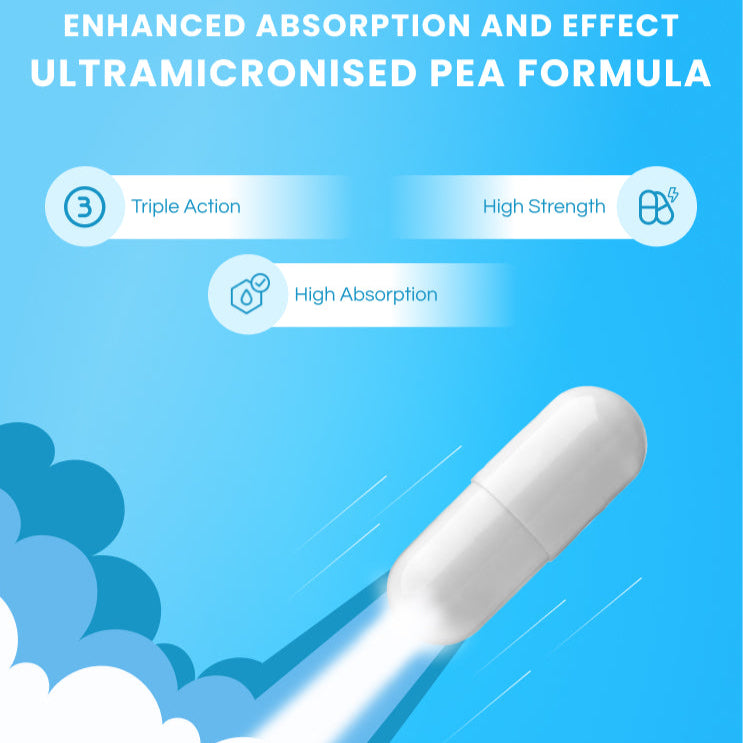 Palmitoylethanolamide (PEA) is a natural fatty acid that has shown promising benefits in various areas of health. It possesses anti-inflammatory properties, supports pain management, and may provide neuroprotective effects, making it a potential therapeutic option for conditions such as chronic pain, inflammation, and certain neurological disorders. Our PEA is ultramicronised for enhanced absorption.